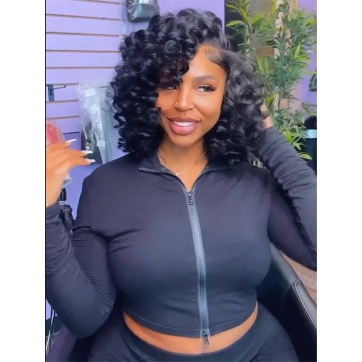 Bouncy Curly Bob Human Hair Wigs Beginner Friendly Glueless Lace Front Wig 180% Density Flash Sale